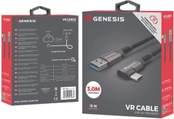 Kábel VR GENESIS je vybavený uhlovým konektorom USB pre ľahké pripojenie a dvoma suchými zipsami, ktoré uľahčujú montáž kábla na VR headset. Vďaka dĺžke 3 m sa môžete pohybovať slobodne bez obmedzení.