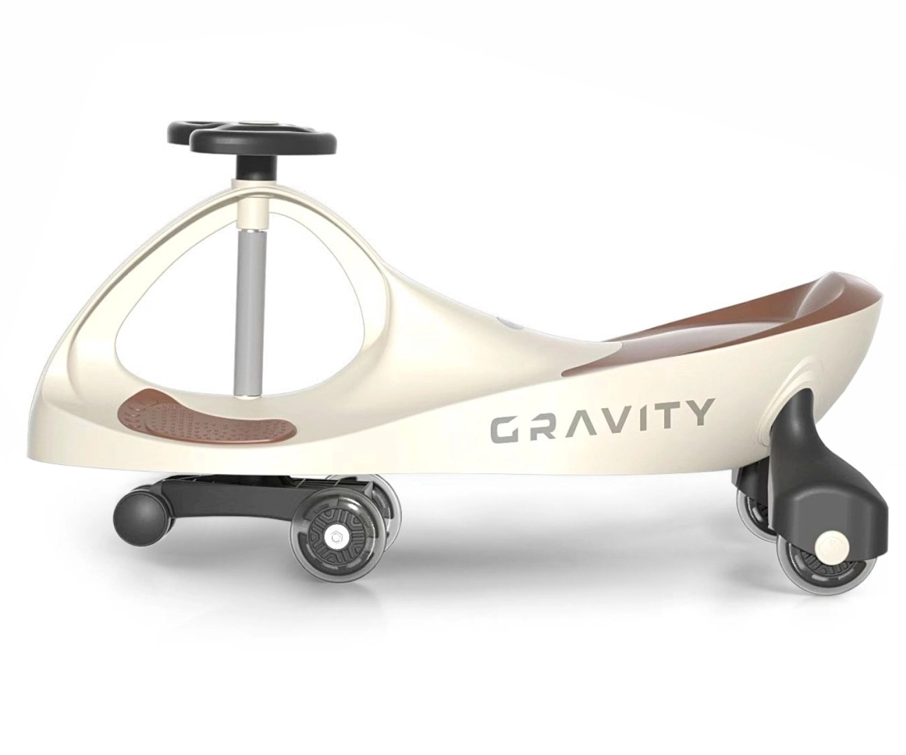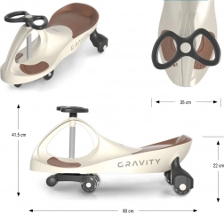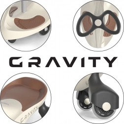 Odrážadlo Gravity je vyrobené z kvalitného materiálu, čo zaisťuje jeho ľahkosť a odolnosť. Ergonomický dizajn a tvarované sedadlo poskytujú maximálne pohodlie počas jazdy. Stabilná základňa a nízke ťažisko zvyšujú bezpečnosť používania. Volant je ľahko uchopiteľný pre malé deti a je vybavený svietiacimi LED kolieskami, ktoré zvyšujú atraktivitu odrážadla.