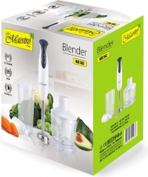 Blender sada 3v1 Maestro ponúka výkon 300 W a je navrhnutý pre jednoduché a efektívne mixovanie. S dvoma úrovňami rýchlosti a funkciou Turbo si poradí s rôznymi ingredienciami.