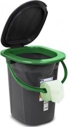 Vyrobená z odolného plastu, toaleta má tesnú konštrukciu, ktorá účinne bráni úniku nepríjemných pachov. Transportná rukoväť plní funkciu vešiaka na toaletný papier a špeciálna preliačina na dne uľahčuje vyprázdňovanie nádoby.