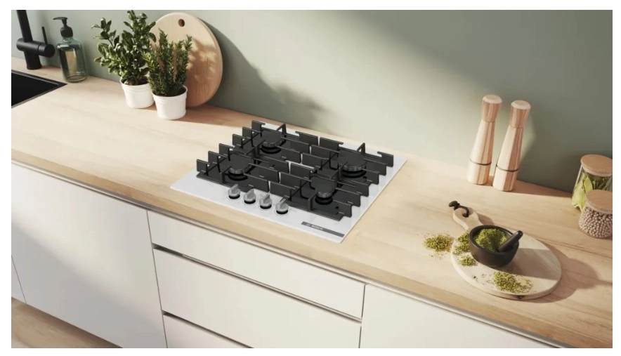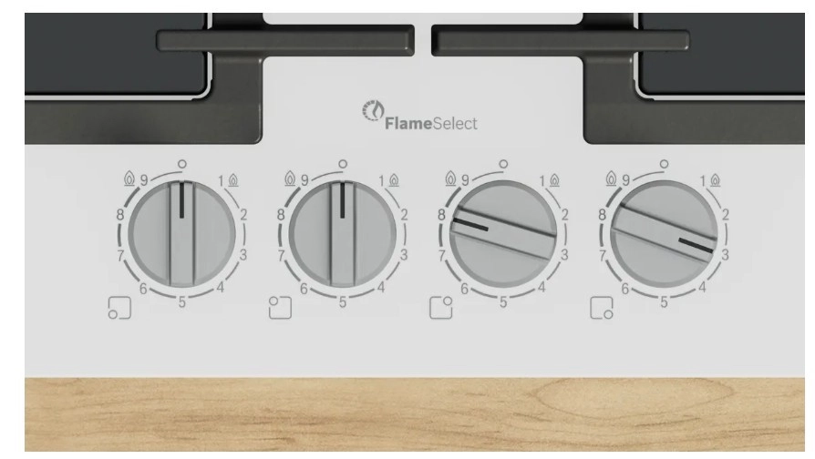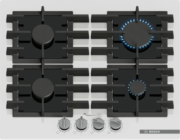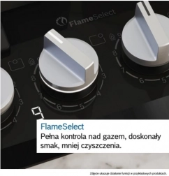 Plná kontrola nad plynovou varnou doskou. S varnou doskou Bosch FlameSelect môžete ľahko a presne regulovať intenzitu plameňa, čo zaručuje perfektné výsledky varenia. K dispozícii je deväť úrovní plameňa, ideálnych pre vyprážanie, dusenie aj varenie.