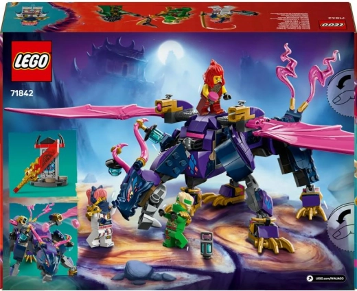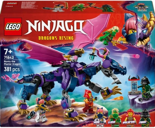 Vydajte sa do tretej série seriálu NINJAGO: Povstanie drakov a ovládnite mocného draka Rontu. Model nadchne kĺbovými krídlami, chvostom, hlavou aj papuľou, vďaka čomu ľahko zaujme dynamické pózy. Na chrbte nájdete dve sedlá pre minifigúrky a pod každým krídlom streľca pre strhujúce súboje.