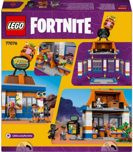 LEGO Fortnite Reštaurácia Durrr Burger je kreatívna stavebnica pre deti od 10 rokov, ktorá prenáša ikonické miesto z hry FORTNITE do skutočného sveta. Modulárna konštrukcia, bohaté doplnky, štyri minifigúrky a bonusový herný outfit po naskenovaní QR kódu zaistia hodiny zábavy a fantázie.