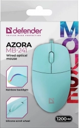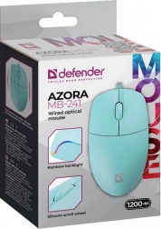Balenie s myšou Defender Azora v modrej farbe upozorňuje na efektivitu s DPI 1200 a znamenitým silikónovým scrollovacím kolieskom.