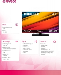 Ponorte sa do sveta skvelého obrazu s týmto 43-palcovým LED televízorom, ktorý kombinuje moderný dizajn s pokročilou technológiou zobrazenia. Vysoko kvalitná obrazovka zaisťuje realistické farby a ostrý kontrast, takže každý detail vynikne a poteší vaše zmysly.