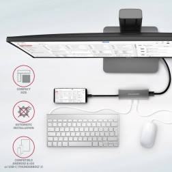 Elegantné a tenké hliníkové puzdro nielen skvele vyzerá, ale tiež zaisťuje mechanickú odolnosť a pasívne chladenie. Textúrovaný povrch nezanecháva odtlačky prstov. Je ideálnym doplnkom pre notebooky bez USB-A portov a výstupu videa, umožňujúci jednoduché pripojenie periférií vďaka funkciám Plug and Play a Hot Plug.
