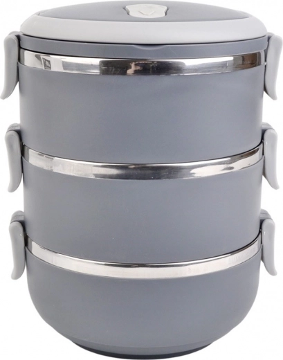 Termos na obed s kapacitou 2,2L od renomovanej poľskej značky Domik, známej svojou kvalitou a prijateľnou cenou. Obsahuje tri oddelené nádoby z nehrdzavejúcej ocele, tesnenie zaisťujúce hermetickosť a je vhodný na kontakt s potravinami.
