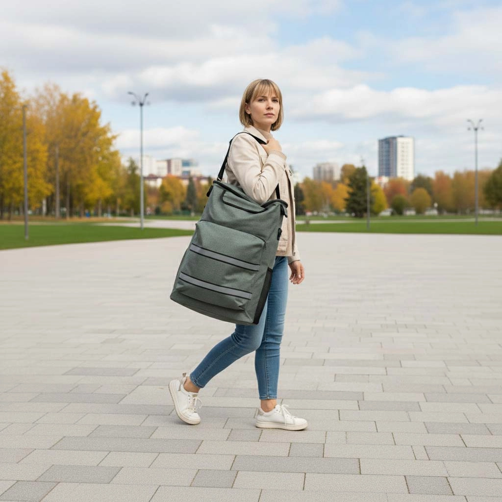 - Odolnosť a bezpečie: vodoodpudivý materiál, reflexné prvky, max. nosnosť 30 kg.