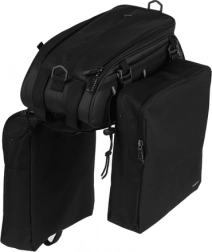Vyrobené z vodotesného polyesteru, tieto tašky odolávajú dažďu a vlhkosti, chránia vaše veci pri akomkoľvek počasí. Skladajú sa z jednej centrálnej tašky a dvoch bočných sáčkov, ktoré možno ľahko odstrániť a nosiť ako tašku cez rameno.