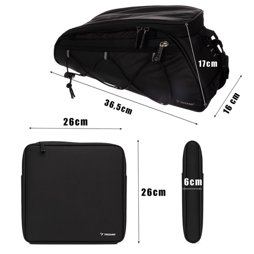Sada vodotesných cyklistických tašiek TRIZAND je dokonale vhodná na všetky vaše výlety a každodennú jazdu. Hlavná taška má termálnu izolačnú vrstvu, ktorá pomáha udržať potraviny a nápoje v požadovanej teplote. Každá taška je navrhnutá pre jednoduchú manipuláciu a poskytuje dostatok priestoru pre vaše potreby.