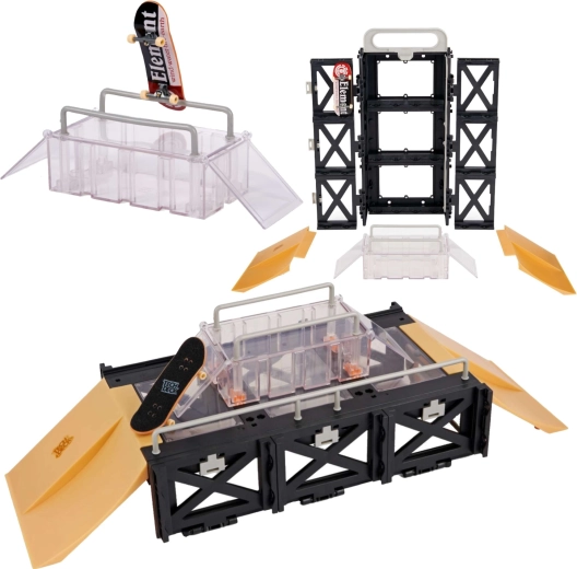 Vďaka modulárnym dielom zostavíte rôzne konfigurácie – od dvojitých kickerov po dlhé zábradlie. Set je kompatibilný s ďalšími rampami Tech Deck, takže svoj minipark môžete postupne rozširovať.