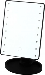 Zrkadlo možno napájať štyrmi batériami AA (nie sú súčasťou dodávky), čo z neho robí mimoriadne praktického pomocníka v každodennom používaní, aj na cestách alebo na miestach bez prístupu k zásuvke. Široký, stabilný podstavec je vybavený praktickým organizérom, ktorý je ideálny pre drobné kozmetické produkty, šperky alebo kefy. Moderný dizajn, čierna úprava a intuitívne ovládanie spájajú estetiku a užitočnosť.