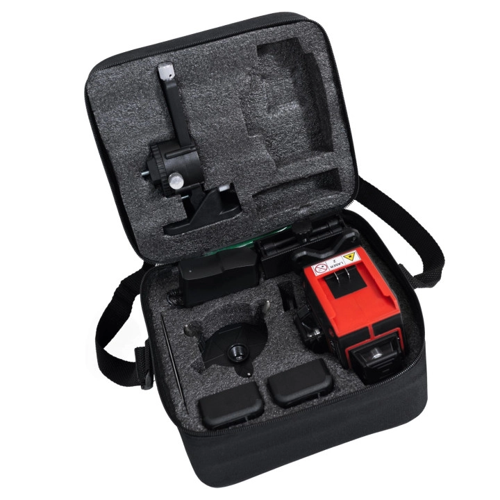 Technické parametre zahŕňajú auto-niveláciu až do 3°, ktorá automaticky opravuje drobné nepravidelnosti a ušetrí vám čas. Ak je prekročená maximálna úroveň, línia bude blikať a indikovať potrebu úpravy. Odolnosť voči vode IP54 chráni zariadenie pred prachom, špinou a postriekaním, čo je ideálne pre vnútorné aj vonkajšie použitie bez ohľadu na počasie. Diaľkové ovládanie zaisťuje bezdrôtové ovládanie aj z väčšej vzdialenosti s možnosťou prepínania režimov a zapínania/vypínania lúčov.