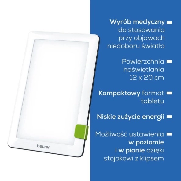 Obzvlášť v zimných mesiacoch mnoho ľudí pociťuje nedostatok rovnováhy alebo energie kvôli nedostatku denného svetla. Lampa svetelnej terapie Beurer TL 30 účinne čelí týmto príznakom a zlepšuje vašu pohodu v šedých dňoch tým, že simuluje denné svetlo.
