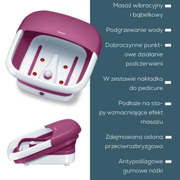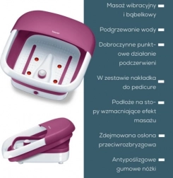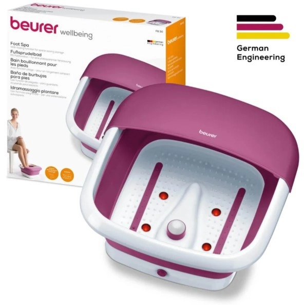 Relaxačná vanička na vodné masáže nôh od Beurer kombinuje funkcie pedikúry, vibračnej masáže a udržuje teplotu vody, čo poskytuje úľavu a regeneráciu unaveným nohám.