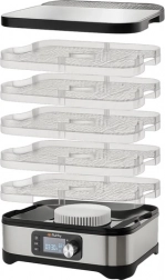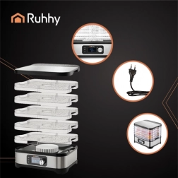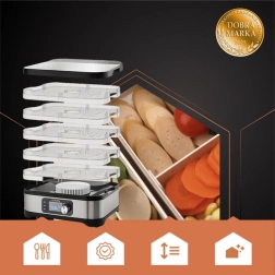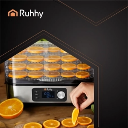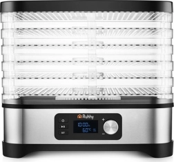 Sušička RUHHY vyniká univerzálnym využitím - je ideálna na sušenie húb, ovocia, zeleniny a bylín. Disponuje 5 táckami pre maximálny priestor na sušenie a nastaviteľnou teplotou od 35 do 70°C pre prispôsobenie rôznym druhom potravín.