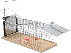 Táto kovová pasca je navrhnutá pre bezpečný a účinný odchyt malých škodcov bez potreby použitia jedov. Je vyrobená z oceľového drôtu a drevenej základne, čo poskytuje odolnosť a bezpečné používanie.