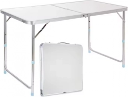 Skladací kempový stôl sa rýchlo rozkladá a po zložení tvorí kompaktný kufrík s pohodlnou rukoväťou, čo umožňuje jednoduché skladovanie a prepravu. Veľká doska o rozmeroch 120 x 60 cm ponúka dostatok priestoru pre jedlo, nápoje alebo hry. Výškovo nastaviteľné nohy umožňujú prispôsobenie rôznym podmienkam a preferenciám používateľov.