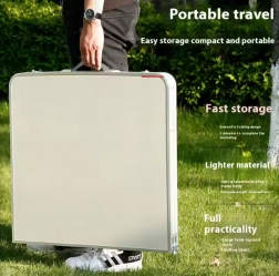 Skladacia konštrukcia stola a stoličiek umožňuje kompaktné uloženie ako šikovný kufor s rúčkou, čo uľahčuje prenášanie a skladovanie. Je zvlášť praktické počas výletov, keď je dôležitý každý centimeter priestoru v batožinovom priestore.