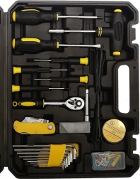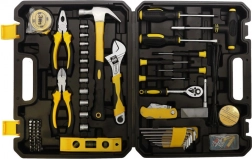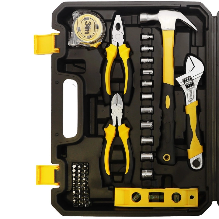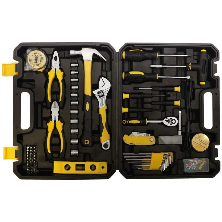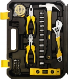 Táto sada obsahuje všetko potrebné pre každodenné úlohy, ako je montáž nábytku, opravy bicykla, výmena zásuvky alebo zavesovanie obrazov. Uloženie vo pevnom kufríku s tvarovanými priehradkami zabezpečuje ľahkú organizáciu a bezpečné prenášanie. Náradie vyrobené z uhlíkovej ocele a chróm-vanádiovej ocele poskytuje dlhú životnosť a spoľahlivosť po niekoľko rokov.