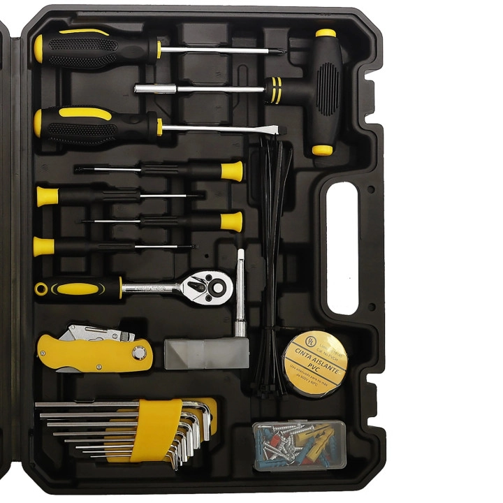 Sada obsahuje rôzne skrutkovače, račne, kľúče a ďalšie dôležité nástroje nevyhnutné pre domáce a dielenské úlohy. Je ideálna pre kutilov a zaisťuje, že budete mať vždy ten správny nástroj po ruke.