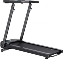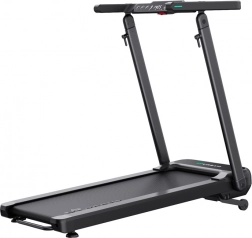 LED panel prehľadne zobrazuje rýchlosť, čas, vzdialenosť a kalórie. Integrovaný držiak/tablet stand uľahčí prácu aj zábavu počas chôdze. Skladacia konštrukcia a transportné kolieska umožňujú rýchle uloženie po tréningu, takže pás nezaberá miesto.