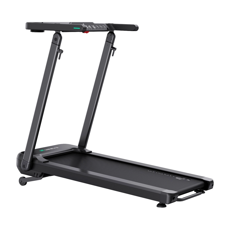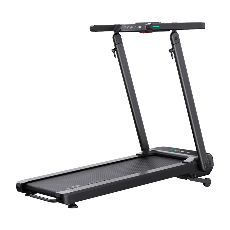 Kompaktná konštrukcia s jednoduchým skladaním šetrí miesto. Integrovaný držiak na tablet/telefón spríjemní chôdzu aj prácu.