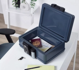 Malá ohňovzdorná schránka, ktorá chráni vaše dokumenty a digitálne médiá pred ohňom. Užívajte si odolnosť voči ohňu až 30 minút a pohodlnú prenosnosť vďaka úchytu.