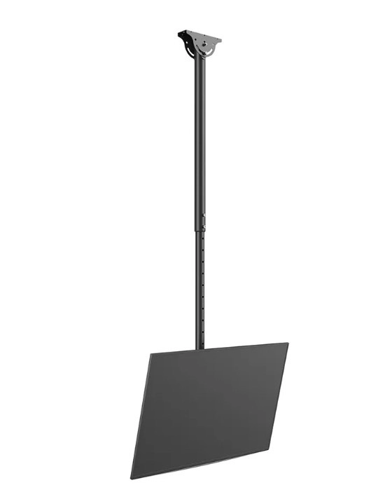 Stropný držiak je možné ľahko nastaviť na výšku od 106 do 156 cm a unesie záťaž až do 50 kg. Je vhodný pre obrazovky spĺňajúce štandard VESA s rozmermi otvorov od 100x100 až po 200x200 mm. Praktický systém správy káblov skryje a usmerní káble od stropu k obrazovke a poskytuje možnosť nastavenia montážneho uhla pre šikmé stropy. Je dodávaný s prídavnou krytkou pre montáž na zavesené stropy.