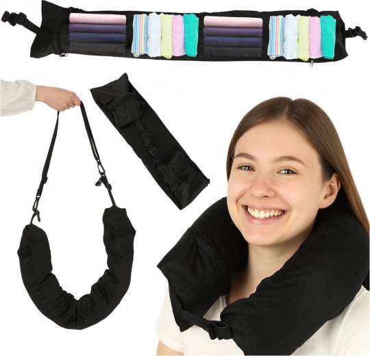 Tento cestovný vankúš je ideálny spoločník na cesty. Je vybavený predným zapínaním vo forme spony, čo zaisťuje stabilitu a komfort počas používania. Vnútorné veľké vrecko poskytuje praktické úložné riešenie pre vaše osobné veci. Dva bočné zipsy umožňujú ľahký prístup z oboch strán, pričom ľavé a pravé vrecká sa spájajú vo vnútri.