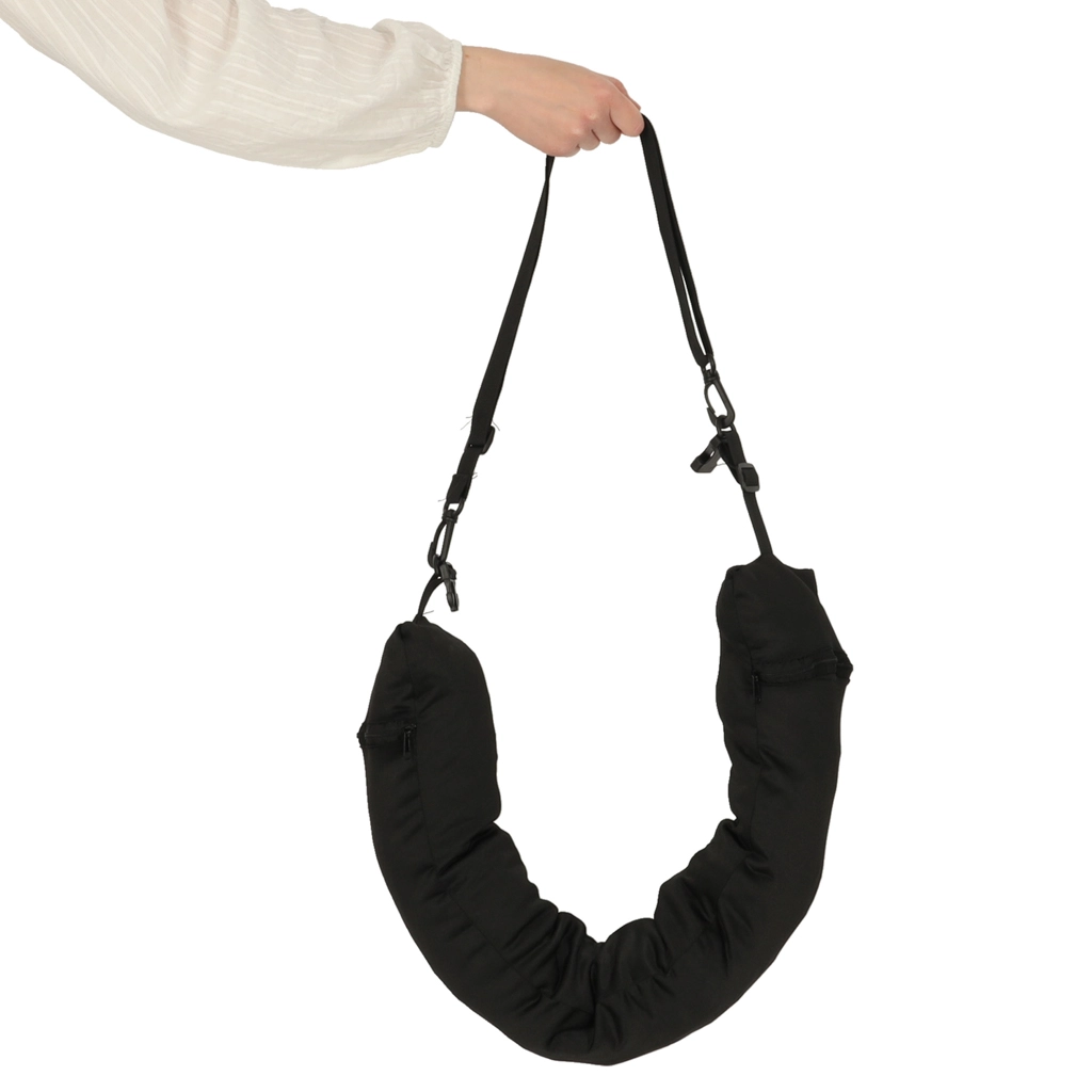 Zahŕňa tiež nastaviteľný popruh na nosenie, čo uľahčuje prepravu vankúša. Tento vankúš je navrhnutý z odolného plastového materiálu, ktorý zaisťuje trvanlivosť a dlhodobé použitie.