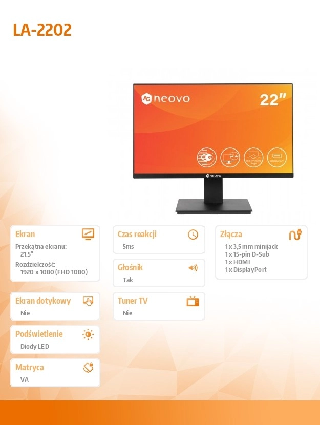 Vychutnajte si kvalitné zobrazenie na 22-palcovom monitore s viacerými možnosťami pripojenia. Tento monitor je skvelým riešením pre tých, ktorí hľadajú spoľahlivosť a flexibilnosť.