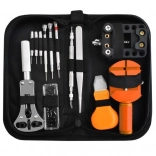 nastavovateľný kľúč, sada 18 koncoviek, regulovateľný držiak na hodinky, 3x pin remover, precízna pinzeta, 3x skrutkovač s výmenným hrotom, nástroj na skrátenie náramkov, nôž na krytky, puzdro
