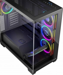 Počítačová skriňa Stellar ARGB Midi 5F je ideálnou voľbou pre každého, kto požaduje nielen vysokú funkčnosť, ale aj štýlový dizajn. Predné a bočné panely z tvrdeného skla umožňujú obdivovať vaše komponenty a vyzdvihujú estetickú hodnotu celého systému.