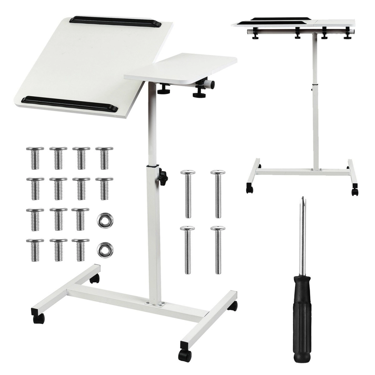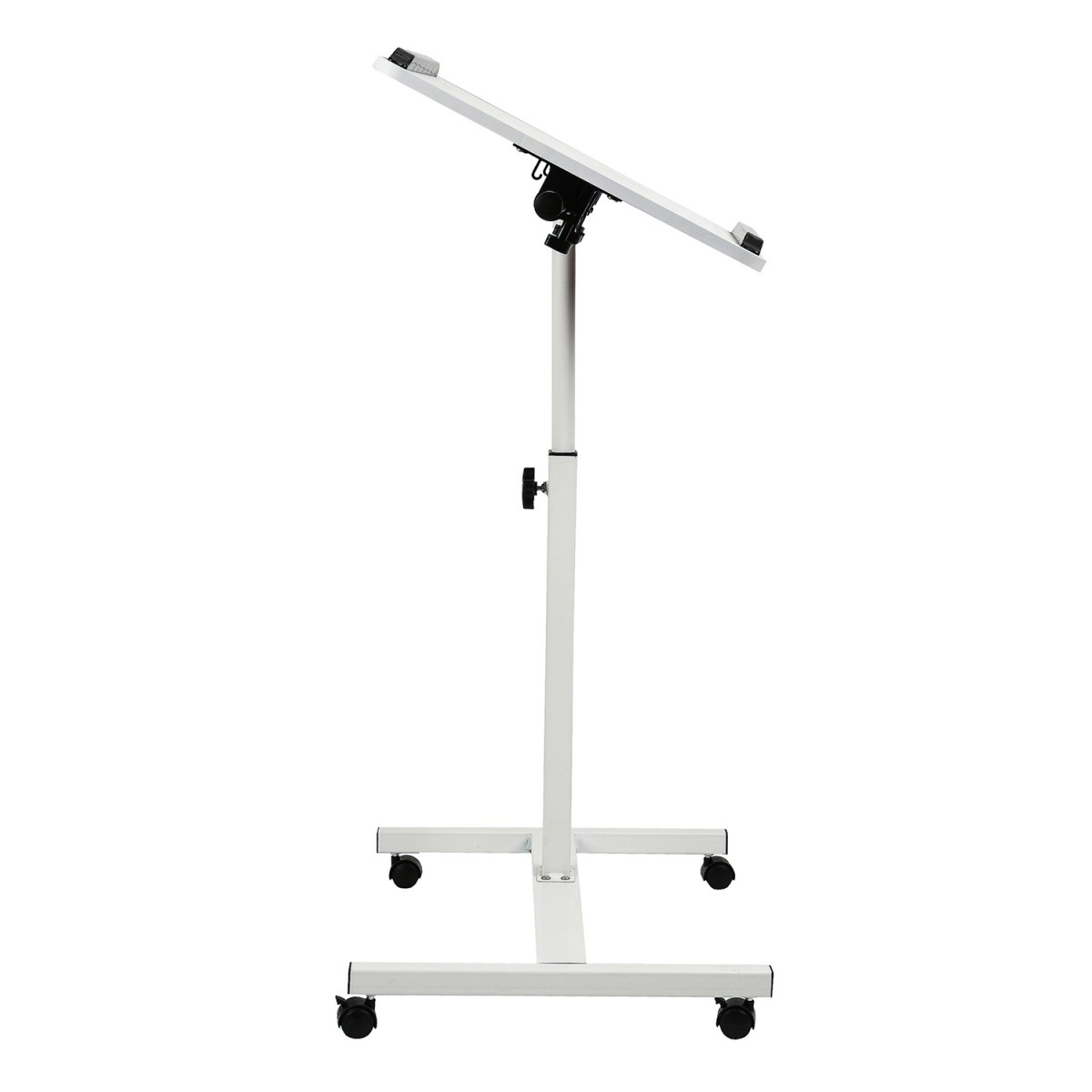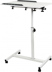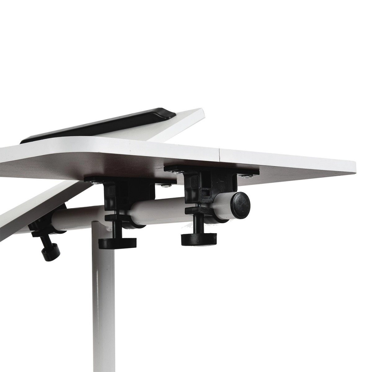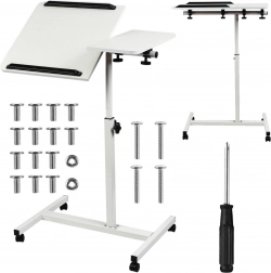 Stolík je vybavený štyrmi kolieskami pre ľahké premiestňovanie a dvomi blokovacími mechanizmami pre stabilitu. To zabezpečuje, že stolík zostane na mieste aj pri veľkom uhle sklonu, čo poskytuje dokonalé mobilné pracovné prostredie.