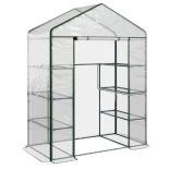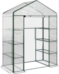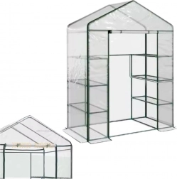 Model obsahuje 4 bočné police a 2 voľné priestory na zemi, čo umožňuje uskladnenie vyšších kvetináčov alebo pestovanie popínavých rastlín. Praktické zipsové dvere uľahčujú prístup dovnútra a konštrukcia s „T“ spojkami zaisťuje rýchlu a intuitívnu montáž bez použitia náradia.