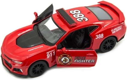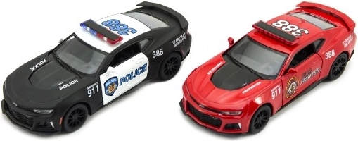 Štýlový model vozidla Chevrolet Camaro od značky Kinsmart v prevedení polícia alebo hasiči. Kovovo‑plastová konštrukcia, zotrvačníkový (pull‑back) pohon pre svižnú jazdu a detailné spracovanie potlačí aj interiéru poteší deti aj zberateľov. Vhodné od 3 rokov.