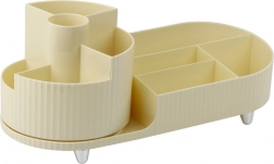 Otočný organizér je vybavený mechanizmom otočným o 360°, ktorý zaisťuje rýchly a ľahký prístup k obsahu. Ideálne sa hodí ako kontajner na štetce na líčenie, rúže, korektory, fľaštičky parfumov, ale aj ako organizér na ceruzky, nožnice, fixky, zvýrazňovače, sponky či iné drobné kancelárske doplnky.