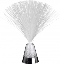 Jemné a rovnomerné svetlo vytvára príjemnú atmosféru relaxácie a pokoja. Lampa je postavená na stabilnom základe s priehľadnou náplňou napodobňujúcou ľadové kryštáliky, doplnené elegantnou chrómovanou úpravou. Pružné optické vlákna sa rozprestierajú vejárikovito, pričom ich konce jemne trblietajú rôznymi farbami.