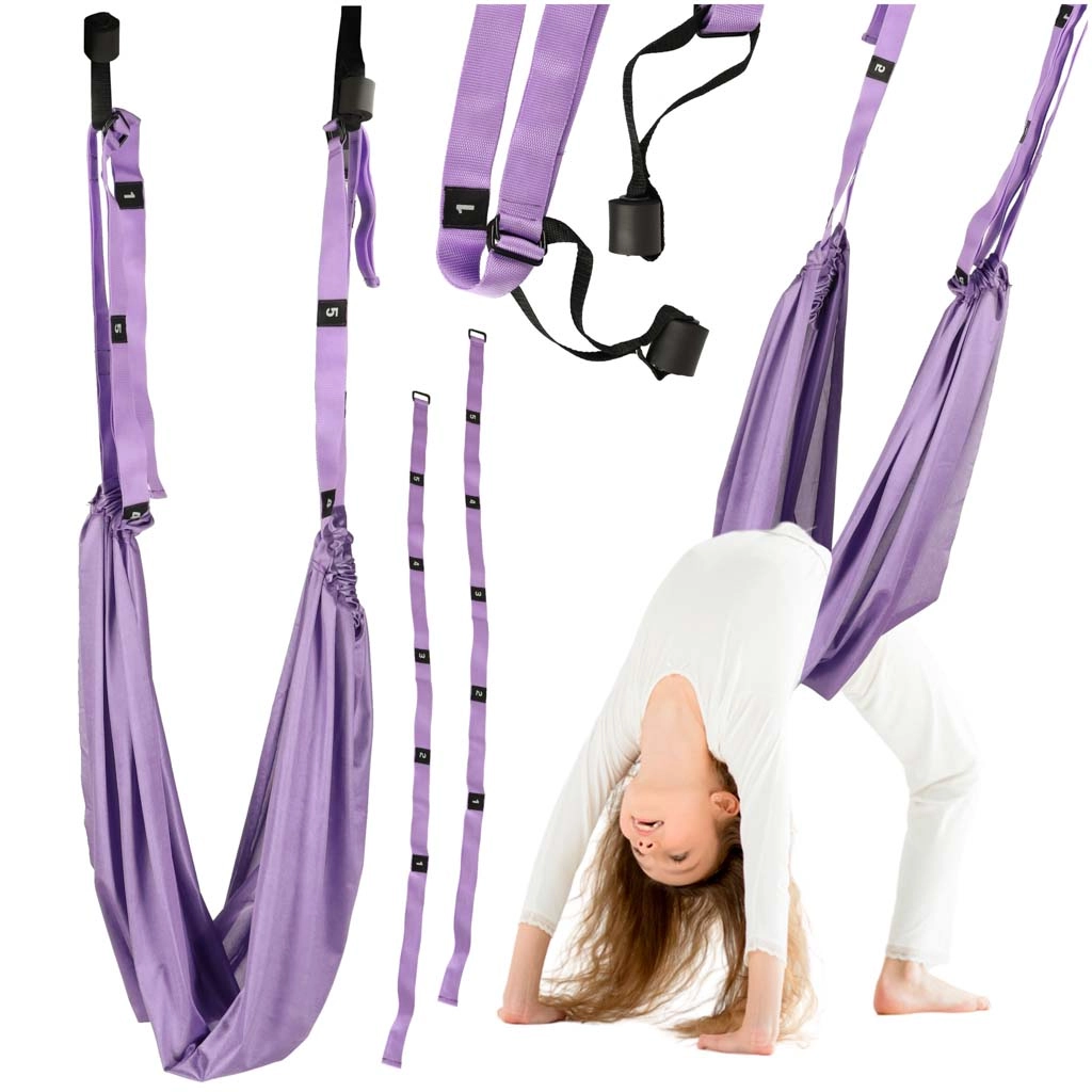 Set je vhodný na jogu, aerial jogu aj prvky akrobacie. Pomáha odľahčiť záťaž na chrbát, aktivovať hlboké svaly a bezpečne rozvíjať mobilitu. Štandardná veľkosť plachty a číslované popruhy zaručia správne nastavenie pre rôzne postavy aj typy tréningu.