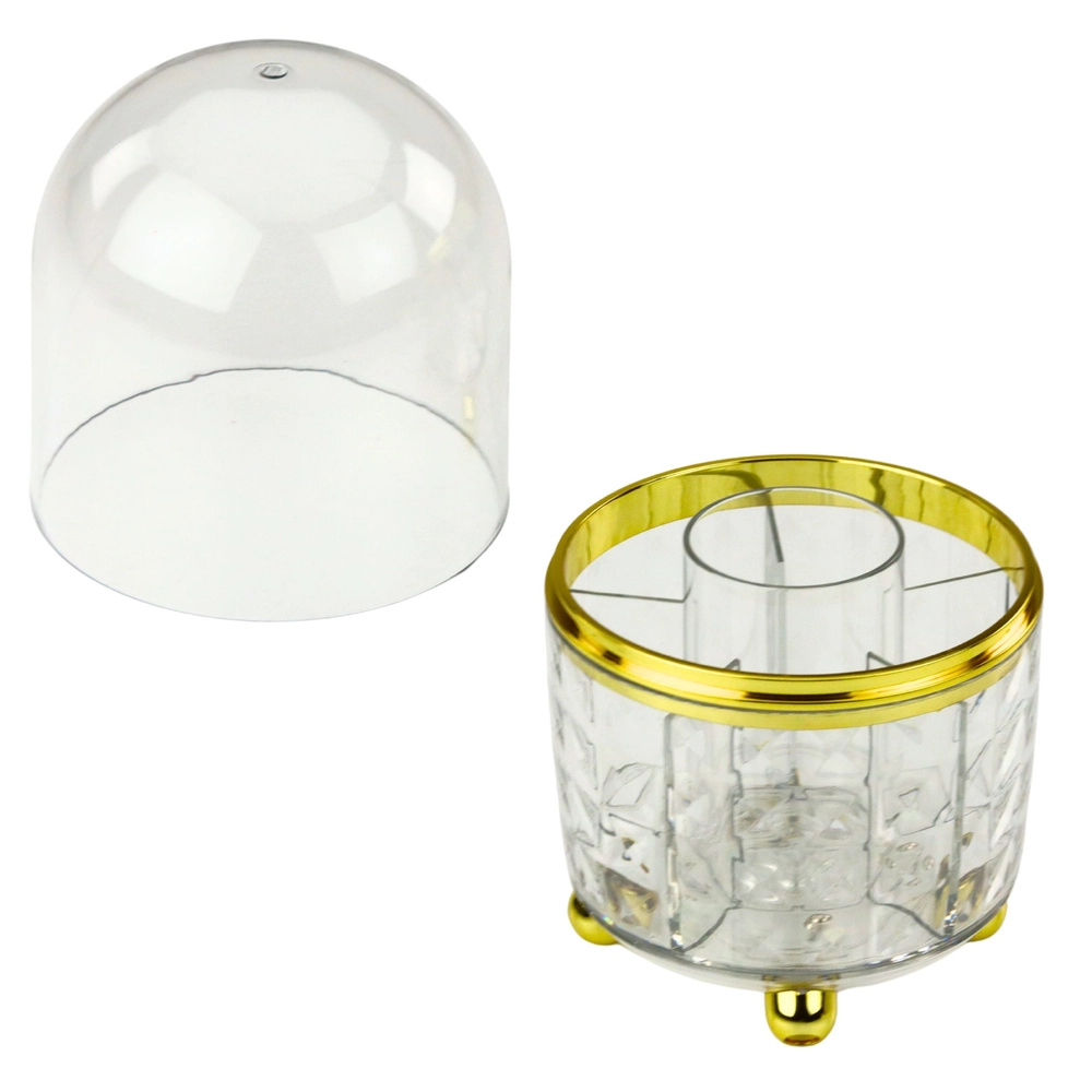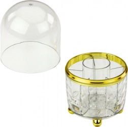 Organizér je vyrobený z odolného plastu štýlizovaného na sklo a zdobený elegantným zlatým prevedením. Vo vnútri sa nachádzajú praktické priehradky pre organizáciu štetcov, rúžov, riaseniek alebo drobných doplnkov.