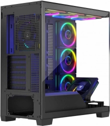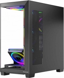 Volcano Stellar ARGB Midi prináša inovatívny dizajn s možnosťou vidieť všetky komponenty vďaka preskleným panelom. Skladná rámová konštrukcia umožňuje jednoduchú montáž a údržbu. Prispôsobte skriňu najmodernejším technológiám, vrátane chladenia vodou až do veľkosti 360 mm radiátorov a inštalácie dlhých grafických kariet.