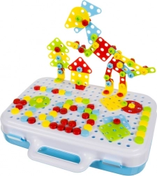 Najlepším darom pre malých kutilov je praktická sada s funkčnou vŕtačkou, ktorá podporuje rozvoj manuálnych zručností a koordinácie. Mozaika je zabalená v praktickom kufríku, ktorý uľahčuje prenášanie a usporiadanie dielikov. Táto sada je ideálna na doma, do škôlky či na cesty k starým rodičom.