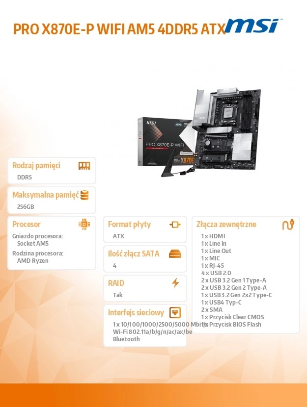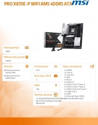 PRO X870E-P WIFI je navrhnutá s exkluzívnymi funkciami pre maximálny výkon a kompatibilitu s procesormi AMD Ryzen série 9000. Toto riešenie je ideálne pre náročných používateľov vyžadujúcich ako špičkový výkon, tak stabilné a rýchle pripojenie.