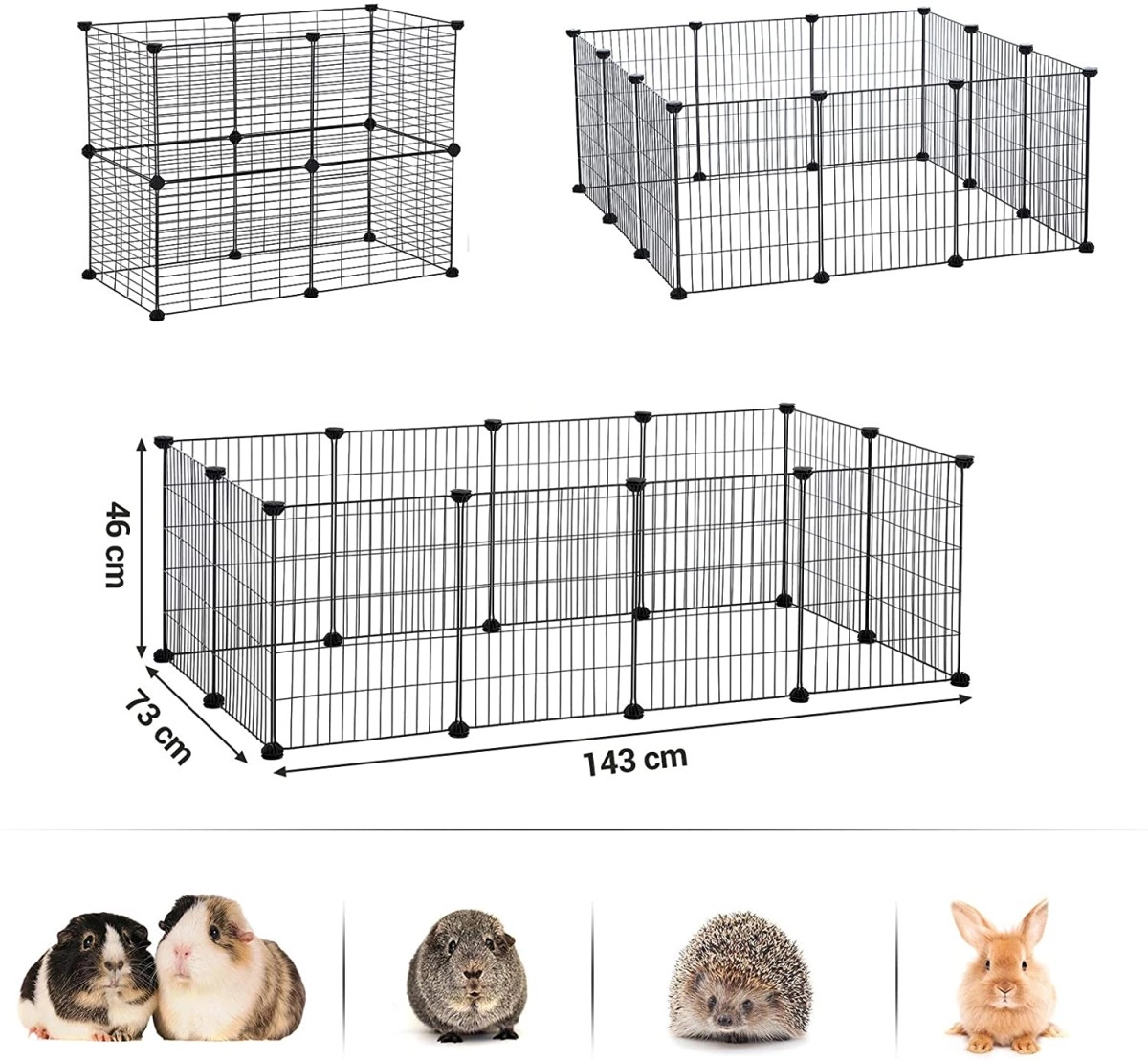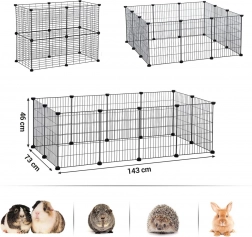 Modulárny výbeh je perfektným riešením pre majiteľov domácich zvierat, ktorí chcú poskytnúť svojim miláčikom bezpečný a uzavretý priestor doma. Konštrukcia z kovovej mriežky s otvormi o priemere 2,5 cm zabezpečuje bezpečnosť a dobrý prietok vzduchu. Je vhodný pre škrečky, morčatá, ježkov a trpasličie králiky. Vytvorte útulné miesto, ktoré si váš domáci miláčik zamiluje.