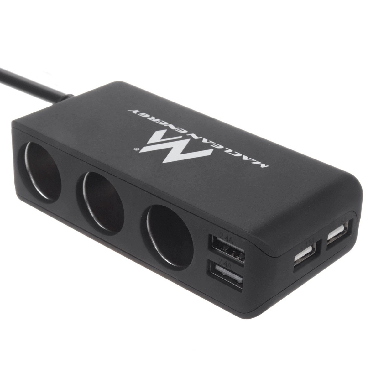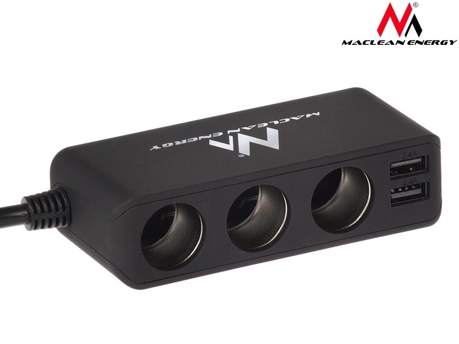 Praktická rozdvojka od značky Maclean je ideálnym riešením pre všetkých, ktorí potrebujú napájať niekoľko zariadení počas jazdy. Elegantný dizajn a gumený povrch v čiernej farbe sa hodia do každého interiéru vozidla. Ponúka 3 zásuvky zapaľovača a 2 USB porty s celkovým výstupom 4.8A.
