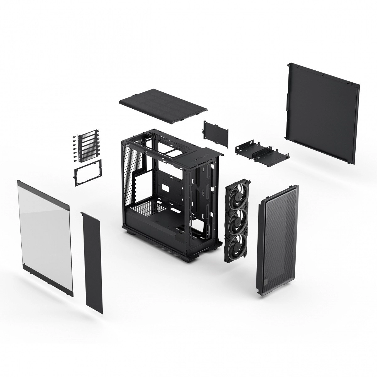 - Kompatibilná s grafickými kartami o dĺžke až 372 mm s prednými ventilátormi, alebo 345 mm s predným radiátorom