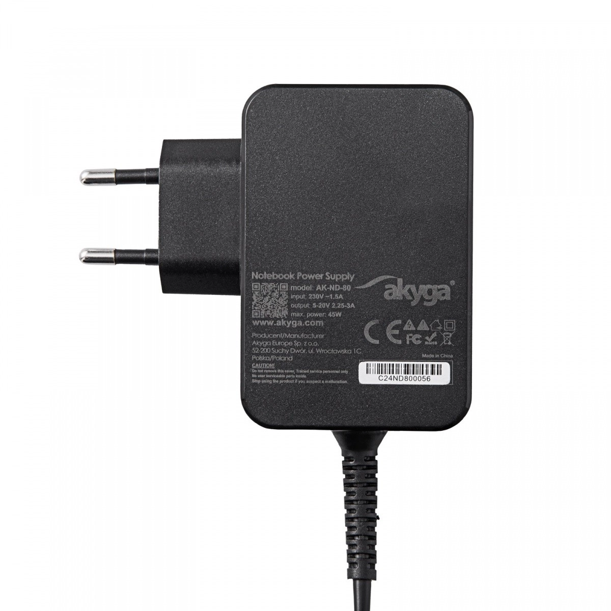 USB-C nabíjačka AK-ND-80 je vybavená všestranným USB-C konektorom, ktorý umožňuje jednoduché nabíjanie širokej škály zariadení vrátane smartfónov, tabletov, notebookov a herných konzol ako Nintendo Switch. Disponuje pevným káblom o dĺžke 1,8 m, čo zaisťuje pohodlné použitie.