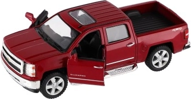 Užite si detailnú repliku ikonického pick-upu CHEVROLET Silverado 2014. Karoséria z kovu s plastovými doplnkami, precízny lak a verné proporcie potešia malých vodičov aj zberateľov. Autíčko má otváracie dvere, takže si pozriete prepracovaný interiér.