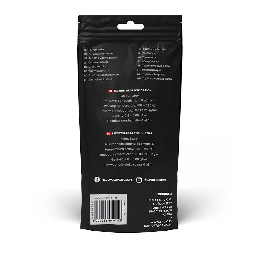 Thermovodivá pasta Savio Glacier TG-04 je navrhnutá na jednoduchú aplikáciu a zabezpečenie efektívneho prenosu tepla: